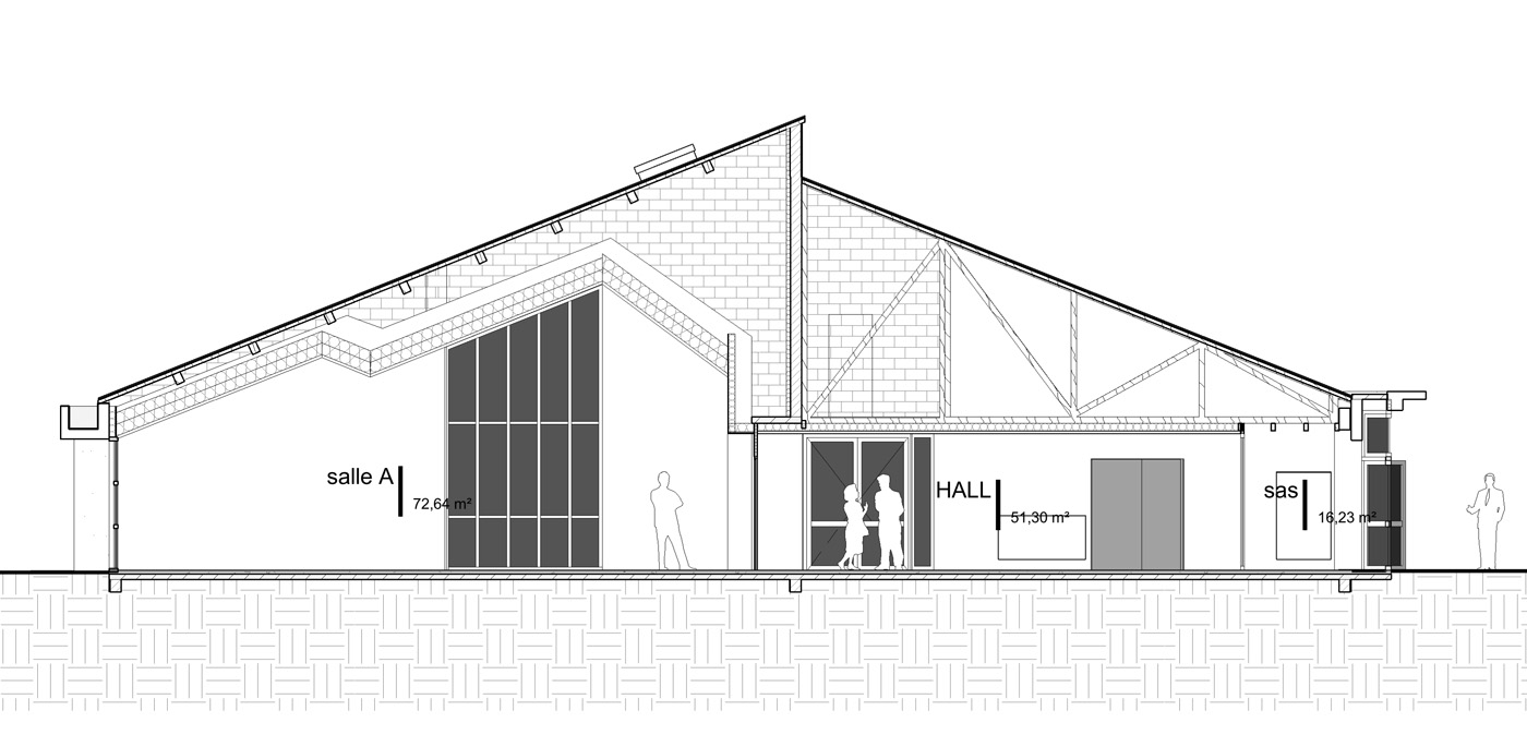 Programme: | Réhabiliter les différents espaces et créer un bar et une nouvelle entrée. Ajuster les usages, remettre aux normes. |